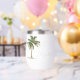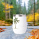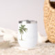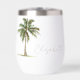 This cute stemless wine tumbler features a tropical palm tree on each side. Personalize with your choice of name and special text on the front and back.