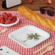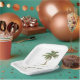 These cute paper party plates feature a tropical palm tree with a matching green border. Personalize with your choice of name and special text.