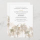 Coastal Palm Trees Beach Wedding Einladung können Sie leicht bearbeiten, indem Sie auf die Schaltfläche "Personalisieren". Ideal für Hochzeitsfeiern an der Küste oder am Strand. TIPP: Andere Hochzeitsartikel, Speisen, Programm und vieles mehr werden unten mit diesem passenden Design für Ihren Komfort kuratiert