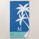 Coastal Palm Trees Monogram Family Name Blue Green Strandtuch