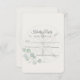 The front features a gently faded sand dollar watermark, graceful script for “Kindly Reply,” and refined form lines for guest responses. Subtle watercolor eucalyptus adds a fresh botanical touch that complements beach, shoreline, and destination weddings beautifully.