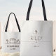 Get ready for your coastal escape with this minimalist Coastal Sand tote! Featuring clean cocoa brown line art of a surfer van and palm trees on warm off-white, it is perfect for road trips. Easily customize the front with a name and the back with your crew or family name—or leave those fields blank for a clean look. A fun way to keep your squad coordinated for photos! Check out the Vintage Van Life Surfer Crew Collection for matching gear. ©Susanne Sachers - Sunny Wanderlust 🌞✈️