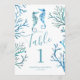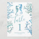 Fügen Sie Ihrem Hochzeitstisch eine charmante Touch an der Küste mit dieser eleganten Hochzeitskarte hinzu, die mit Do Tell A Belle’s Seepferd- und Korallenstrand-Hochzeitssuite abgestimmt ist. Mit einer Nachbildung meines originalen Aquarellkunstwerks in Blau, Türkis und Grün, enthält jede Karte Ihre Tischnummer, Namen und das Hochzeitsdatum. Ideal für Sommerfeiern, Hochzeiten in Urlaubsort, Empfänge mit Wassersport- und Küstenthemen, Probe-Dinners und Brautpartys. Diese funktionieren auch wunderschön als Party-Tisch-Karten für Veranstaltungen am Meer. Entdecken Sie mehr Ideen für die Hochzeitsdekoration am Strand unter www.zazzle.com/dotellabelle. Brauchen Sie etwas Angewohntes? Ich helfe Ihnen gerne!