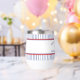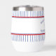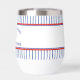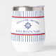 Welcome your friends and family aboard your boat or coastal home with this wine tumbler. Summer parties await this nautical striped monogram boat name design features classic blue pinstripes and a compass rose emblem. Personalize with your boat or coastal home and available in a collection of nautically themed items. Perfect for grilling on your boat or back yard, boat lovers, coastal homes, or seaside entertaining. Stylish and personalized, this nautical design adds a crisp maritime touch to everyday use.
