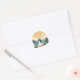 Enthält 20 kleine Aufkleber auf einem Blatt. Mit diesem eleganten Aufkleber mit einem Paar Hochzeitskleidung, stehend am Strand bei Sonnenuntergang, mit einem malerischen Meereshintergrund.