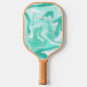 This teal and white pickleball paddle has a coastal look and the ability to be customized with your name on the front and the back. Can also be changed to your initials only.