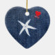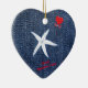 Coastal Thema Valentine's Day Red Heart & Starfish Keramik Ornament