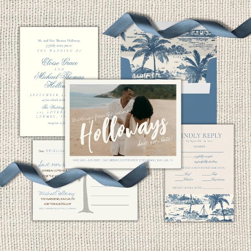 Coastal Toile Pattern Dusty Blue WeddingDesignt von Molly Hauser