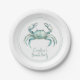 This round paper party plate features a beautiful coastal crab in soft watercolor shades of blue and green. Personalize with your choice of name or special text.