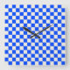 Cobalt and cream checkerboard pattern quadratische wanduhr