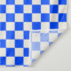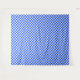A blue and white checkerboard pattern with alternating squares fills the image, creating a geometric, balanced design with a classic, symmetrical feel.