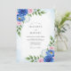 This design features a romantic watercolor palette of deep cobalt and royal blue roses contrasted with soft blush pink blossoms. Delicate green leaves and sprigs of white baby's breath surround the composition, creating an ethereal and airy atmosphere. Ideal for an elegant springtime or summer soirée, the artwork exudes a sense of timeless sophistication and natural beauty.