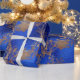 Cobalt Blue Glass Old Gold Wreath Metallic Geschenkpapier