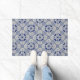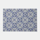 Diagonal wiederholt sich Muster der verzierten Keramik in Kobaltblau - europäischer Stil mit abstrakten Schnörkeln und griechischen Schlüsselmotiven