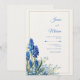 Invite your guests into a world of botanical elegance with this stunning hand-illustrated design. Vibrant cobalt blue muscari, or grape hyacinth, stand tall against a dense spray of delicate sky-blue wildflowers and slender green foliage. A thin, shimmering gold rectangular frame anchors the composition, providing a modern and refined touch. The background features a warm, ivory-textured paper effect that mimics the feel of high-quality watercolor cardstock. The combination of rich, punchy blues and soft organic textures creates a fresh and sophisticated garden vibe that is perfect for an upscale celebration. This botanical layout is a premier choice for a classic spring garden wedding or a serene outdoor ceremony. The striking cobalt and soft blue palette makes it a flawless fit for coastal or nautical celebrations, echoing the colors of deep water and bright skies. Beyond the main event, this design works beautifully for a sophisticated bridal luncheon, an elegant morning engagement party, or a whimsical garden-themed rehearsal dinner. It pairs effortlessly with wedding colors like navy blue, metallic gold, sage green, and warm ivory.