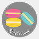 Niedliche französische Macaron- oder Macaroonkuchen. Niedliches französisches Thema auf einem modernen, einfachen Hintergrund. Elegant und niedlich.