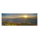 Panoramablick auf Cochabamba im Winter, mit Tunari im Hintergrund der Sonne. Atardecer de Cochabamba en invierno, con el Tunari detrás del sol