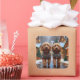This festive design captures the joyful spirit of the holiday season, featuring an adorable dogs.Nestled in a winter wonderland, complete with a decorated Christmas tree, and beautifully wrapped presents. Snowflakes gently fall, adding a magical touch to the scene, while the vibrant colors of the holiday decorations create a warm and cheerful atmosphere.