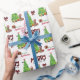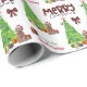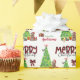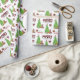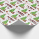 Das wiederholte Muster auf diesem niedlichen Weihnachtsverpackungspapier ist ein Bild eines kleinen braunen Cockapoo-Hundes, der eine rot-weiße Weihnachtsmannmütze trägt. Der Hund sitzt neben einem geschmückten Weihnachtsbaum unter hellen Geschenkpackungen. Ein Stiervogel landet auf dem Baum dahinter. Stilisierter, roter und schwarzer Büffel karierter Text sagt MERRY CHRISTMAS", und Ihre eigene Unterschrift ist in zwei Bereichen für Sie individuell.