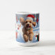 Cockapoo läuft im Schnee mit Weihnachtsmütze Kaffeetasse