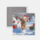 Cockapoo läuft im Schnee mit Weihnachtsmütze Magnet