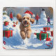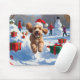 Cockapoo läuft im Schnee mit Weihnachtsmütze Mousepad
