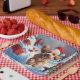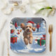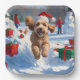 Cockapoo läuft im Schnee mit Weihnachtsmütze Pappteller