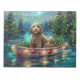 Set segelt mit dieser sehr detaillierten Abbildung in den Zauber der Urlaubssaison und zeigt einen stolzen Hund, der in einem festlich dekorierten Boot sitzt und über einen ruhigen Weihnachtssee gleitet. Die Lichter der nahen Kiefernbäume reflektieren das Wasser und warmen, festlichen Glanz, der das gemütliche Ambiente verstärkt. Die Ornamente versetzen sich von den Seiten des Bootes, während die Laternen leuchten und eine Szene schaffen, die das wahre Wesen der Weihnachtswärme und -freude einfängt. Dieses nostalgische Kunstwerk bringt eine Touch von Urlaubsmagie in jeden Raum, perfekt für diejenigen, die den Geist der Saison schätzen.
