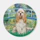 Lily Pond Bridge von Claude Monet, angepasst, um einen Cocker Spaniel enthalten. Die Szene ist in verschiedenen Grün- und Blautönen gehalten und zählt zu den beliebtesten Gemälden Monets.