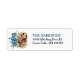 Die links Seite dieser Rücksendeadressen-Aufkleber zeigt ein Portrait eines schönen, buffarbenen Cocker Spanierhundes. Das Bild befindet sich neben einem Aquarellblau, Lavendel und grünem Blumenstrauß. Ihr benutzerdefinierter Text ist schwarz und rechts passend blau.