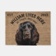 Mit einem Cocker Spaniel präsentieren wir unseren Coir Doormat, der Sie und Ihre Freunde mit offenen Pfoten willkommen heißt. Diese mit Liebe und Liebe zum Detail gestaltete Türmatte ist nicht nur eine funktionale Ergänzung zu Ihrer Haustür, sondern auch ein skurriles Statement, das Ihnen jedes Mal, wenn Sie Ihre Zuhause betreten, ein Lächeln ins Gesicht bringt. Diese Begrüßungsmatte kann mit dem Namen Ihres Hundes personalisiert werden, der Slogan kann auch geändert werden oder Sie können ein Foto Ihres eigenen Hundes verwenden (stellen Sie sicher, dass es transparent ist). Text liest: William Lives Here... Alle Leckereien sind willkommen. Ein wunderbares Geschenk für ein Party, Ferien, Hundefreunde und für jeden Anlass.