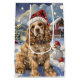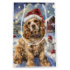 Dieses festliche Design spiegelt den fröhlichen Geist der Urlaubssaison wider und besticht durch ein hübsches Jungtier mit einer Weihnachtsmannmütze. Der Hund ist eingebettet in ein winterliches Wunderland, mit einem Schneemann, einem dekorierten Weihnachtsbaum und wunderschön verpackten Geschenken. Schneeflocken fallen sanft ab und geben der Szene eine magische Touch, während die lebhaften Farben der Feriendekorationen eine warme und fröhliche Atmosphäre schaffen.