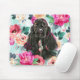 Mousepad mit schwarzem Cocker Spaniel Art umgeben von bunten Blume.