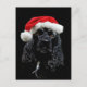 Schwarzer Cocker spaniel trägt einen Weihnachtsmann, den Hund liebt Weihnachts-Postkarte