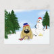 Einzigartiges Cocker Spaniel Winterwunderland Design. Cocker mit etwas Schnee auf der Nase. Der gereizte Schneemann sieht an. Um die Kälte abzuwehren, hat der Cocker Spaniel auf einem Schal und Hut, die die Farben seines Landes sind.