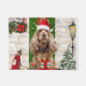 Cocker Spaniel Hund sitzend draußen geschmückt Zuhause mit Weihnachtskranz, Weihnachtsbaum ist eine perfekte Weihnachtsgeschenkidee für Hundefreunde.