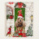 Cocker Spaniel Hund sitzend draußen geschmückt Zuhause mit Weihnachtskranz, Weihnachtsbaum ist eine perfekte Weihnachtsgeschenkidee für Hundefreunde.
