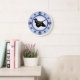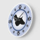Cockerspanielinhaber und Hundeliebhaber genießen diesen modernen Entwurf des Spaßes, der eine Cockerspaniel-Silhouette kennzeichnet und Tatze druckt die Darstellung der Zahlen auf dem Uhrgesicht, mit einem Hintergrund des Blaus und des dunkleren blauen Ringes.