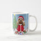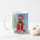 Cocker Spaniel Hund im Schnee mit Weihnachtsgesche Kaffeetasse