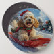 Cocker Spaniel Hund in Sledge Lass es Schnee Weihn Button
