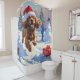 Cocker Spaniel läuft in Schnee mit Weihnachtshut Duschvorhang