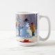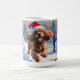 Cocker Spaniel läuft in Schnee mit Weihnachtshut Kaffeetasse