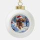Cocker Spaniel läuft in Schnee mit Weihnachtshut Keramik Kugel-Ornament