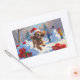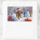 Cocker Spaniel läuft in Schnee mit Weihnachtshut Rechteckiger Aufkleber