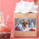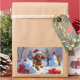 Ein fröhlicher Cocker Spaniel läuft fröhlich durch die schneebedeckte Winterszene und trägt einen festlichen roten Weihnachtshut. Dieses reizende Design zeigt die langen Ohren der Rasse, die seidene Mantel und den spielerischen Geist und erweckt gleichzeitig die Wärme und den Zauber der Ferienzeit. Ein herzlicher Winterurlaub voller festlichen Charme.