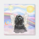 Ein schwarzer Cocker Spaniel probiert seine Flügel unter den flauschigen Wolken des Himmels aus, bevor er frei in die Rainbow Bridge eintritt, wo Engel und Freunde warten.l
