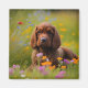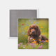 Dieser Magnet zeichnet sich durch einen niedlichen braunen Cocker Spaniel in einem Bereich von Wildblumen.