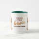 "Cocker puppy kisses fix alles" erklärt diese Tasse für den Cocker Spanierhundebesitzer. Das Bild auf jeder Seite ist ein Portrait eines bezaubernden Buff-farbenen amerikanischen Cocker Spaniel Welpen. Die Bilder und der Text werden auf einem weißen Hintergrund platziert, der mit goldenen Konfetti bestreut ist.