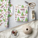 Das wiederholte Muster auf diesem niedlichen Weihnachtsverpackungspapier ist ein Bild eines bezaubernden, bärtigen Cocker Spaniers, der eine rot-weiße Weihnachtsmannmütze trägt. Der Hund sitzt neben einem geschmückten Weihnachtsbaum unter hellen Geschenkpackungen. Ein Stiervogel landet auf dem Baum dahinter. Stilisierter, roter und schwarzer Büffel karierter Text sagt MERRY CHRISTMAS", und Ihre eigene Unterschrift ist in zwei Bereichen für Sie individuell.