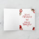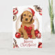 Niedlicher englischer Cockerspanielwelpe mit der Weihnachtsmannmütze, PfefferminzZuckerstange, großem rotem Band und den Weihnachtenornements, gemalt vom Künstler Maryline Cazenave.